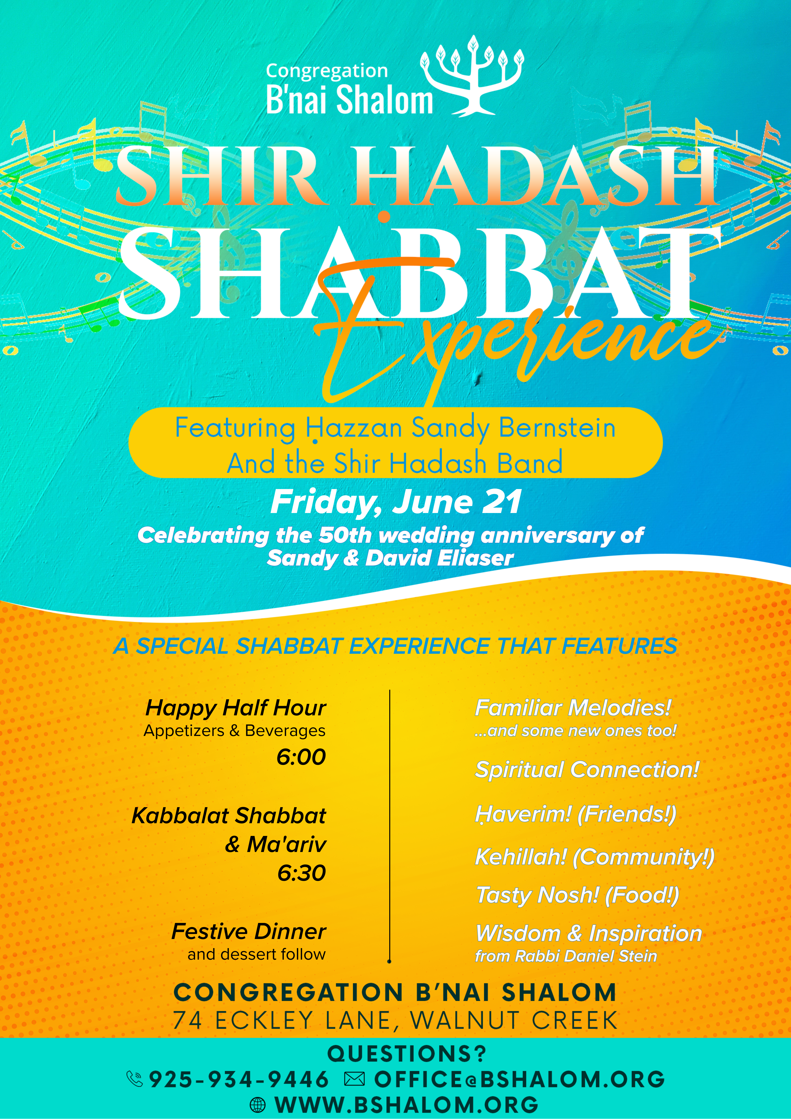 Online via Zoom Shir Hadash Shabbat Experience Sponsored by Sandra & David Eliaser in Honor of Their 50th Wedding Anniversary