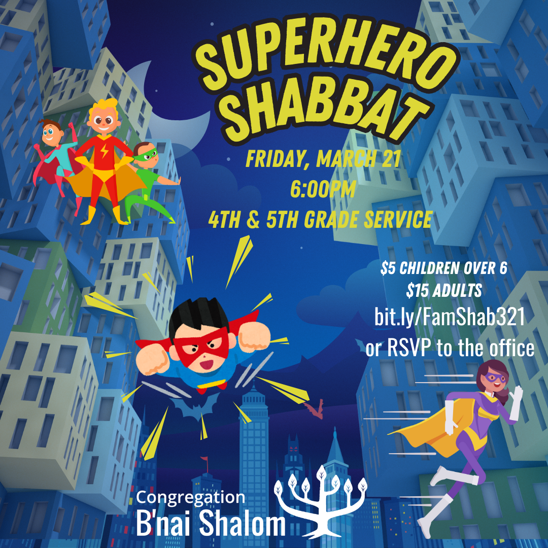Family Superhero Shabbat Shabbat/4th & 5th Grade Service
