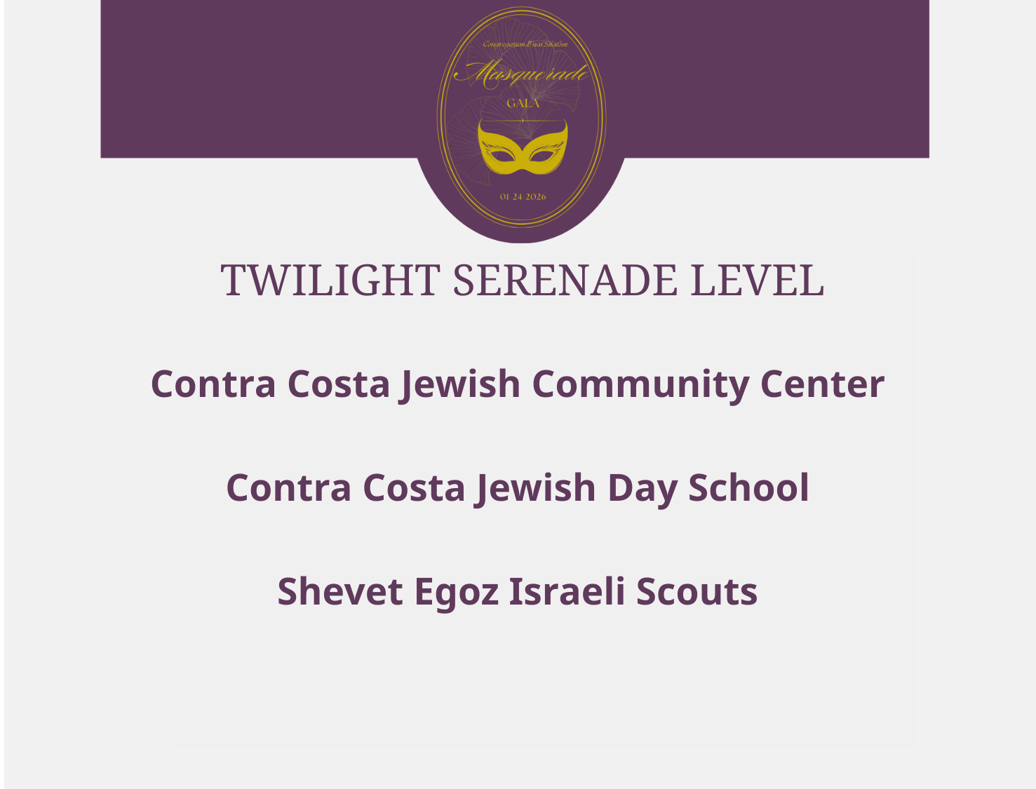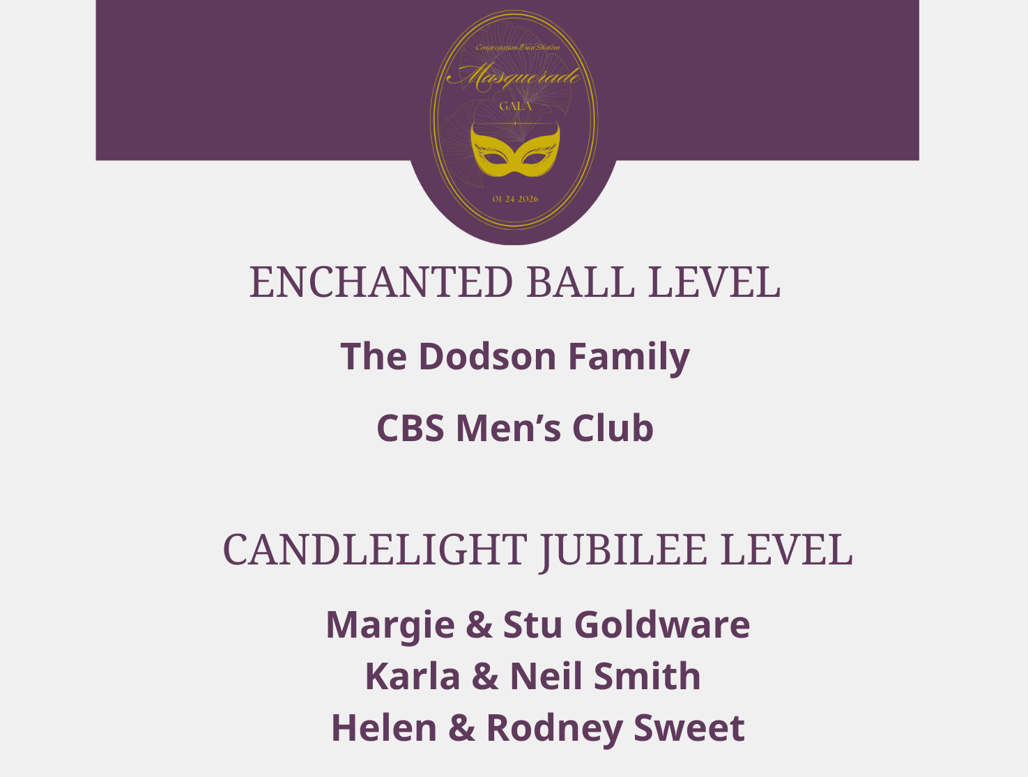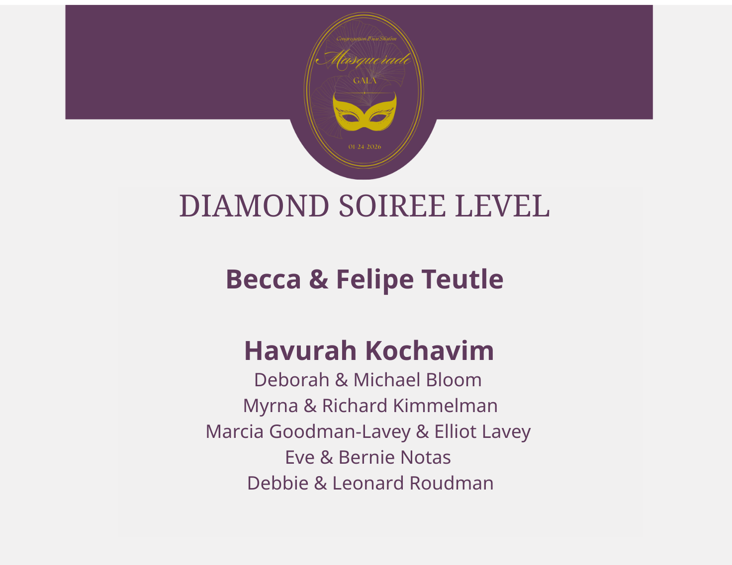 Thank you for your support of the Masquerade Gala and of Congregation B’nai Shalom!